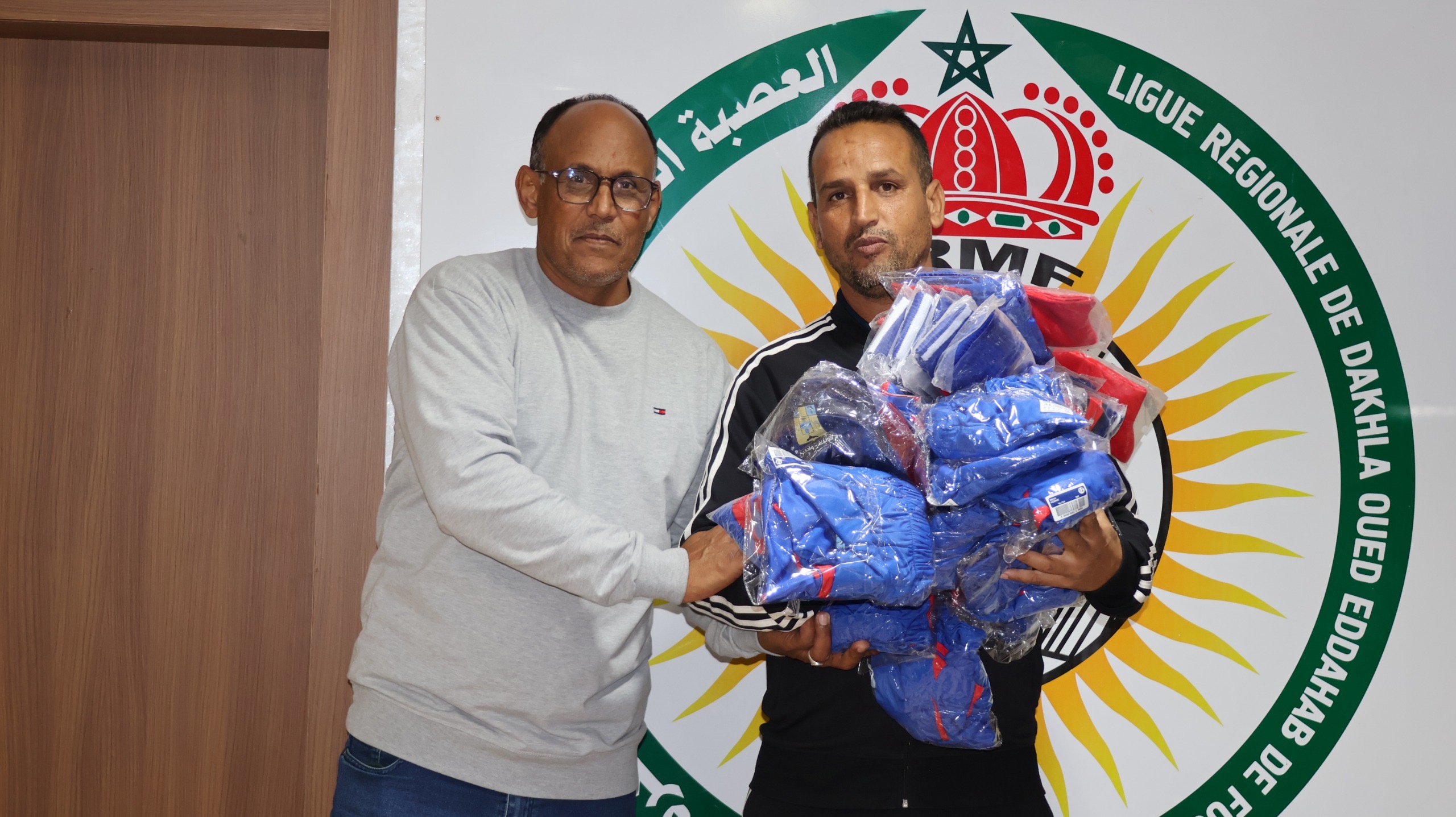 رئيس العصبة الجهوية الداخلة وادي الذهب لكرة القدم يشرف على توزيع الأقمصة قبيل انطلاق عدد من الدوريات الرمضانية