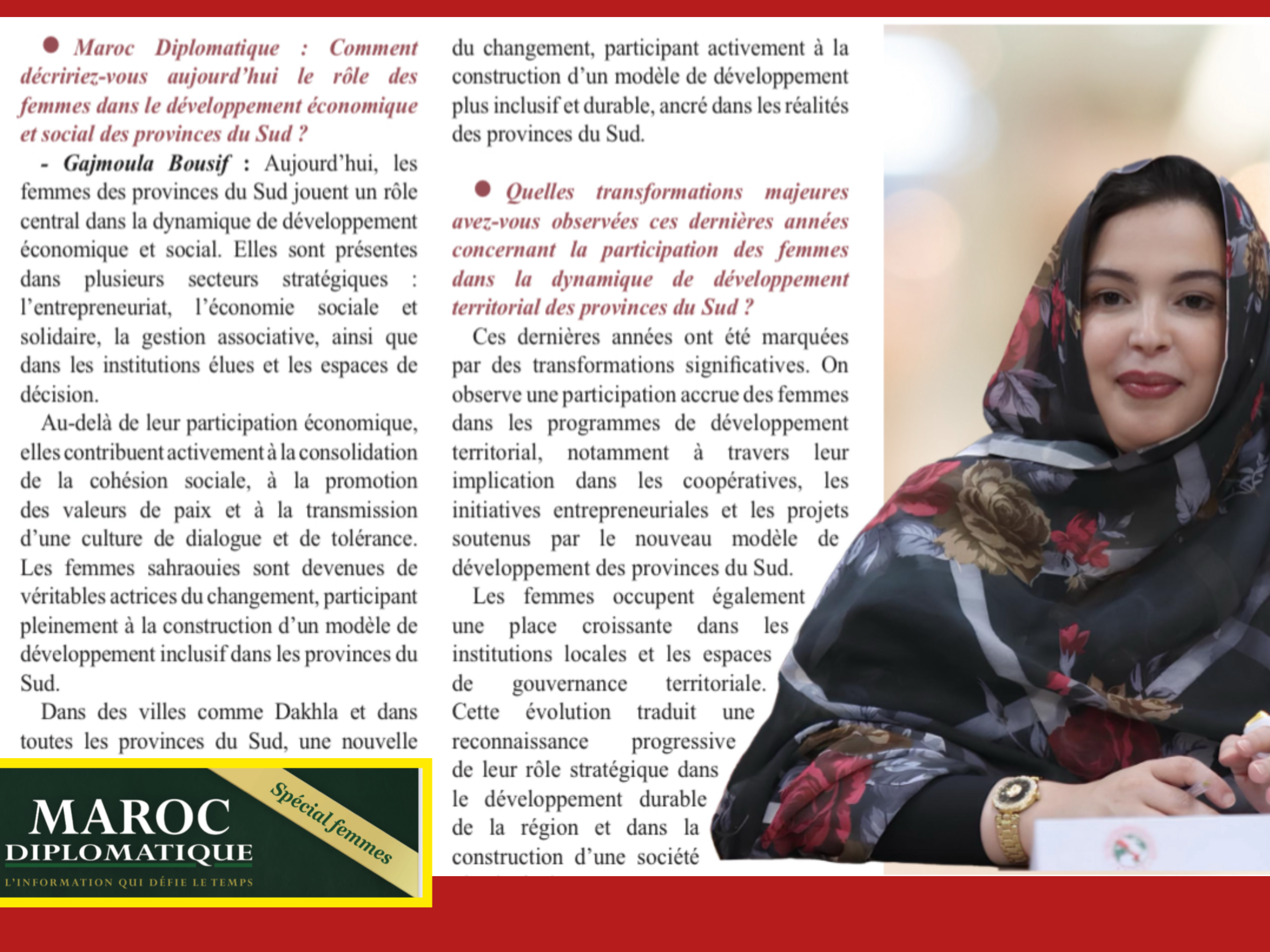 كجمولة بوسيف: المرأة الصحراوية المغربية تقود دينامية التنمية وتفرض حضورها دوليا