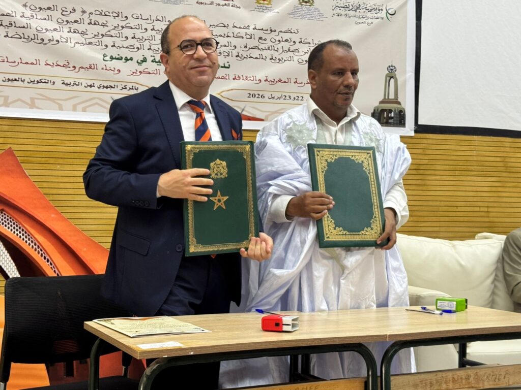 نظمت مؤسسة محمد بصير للأبحاث والدراسات والإعلام فرع العيون بشراكة مع الاكاديمية الجهوية العيون الساقية الحمراء ومختبر الابتكار والبحث لتجويد مهن التربية والتكوين، التابع للمدرسة العليا للتربية والتكوين بجامعة ابن طفيل بالقنيطرة المركز الجهوي لمهن التربية والتكوين، يومي 22 و23 أبريل 2026، فعاليات ندوة علمية وطنية حول قضايا المدرسة المغربية والثقافة الحسانية، وذلك بحضور وازن لثلة من الأكاديميين والباحثين والخبراء التربويين من مختلف جهات المملكة.